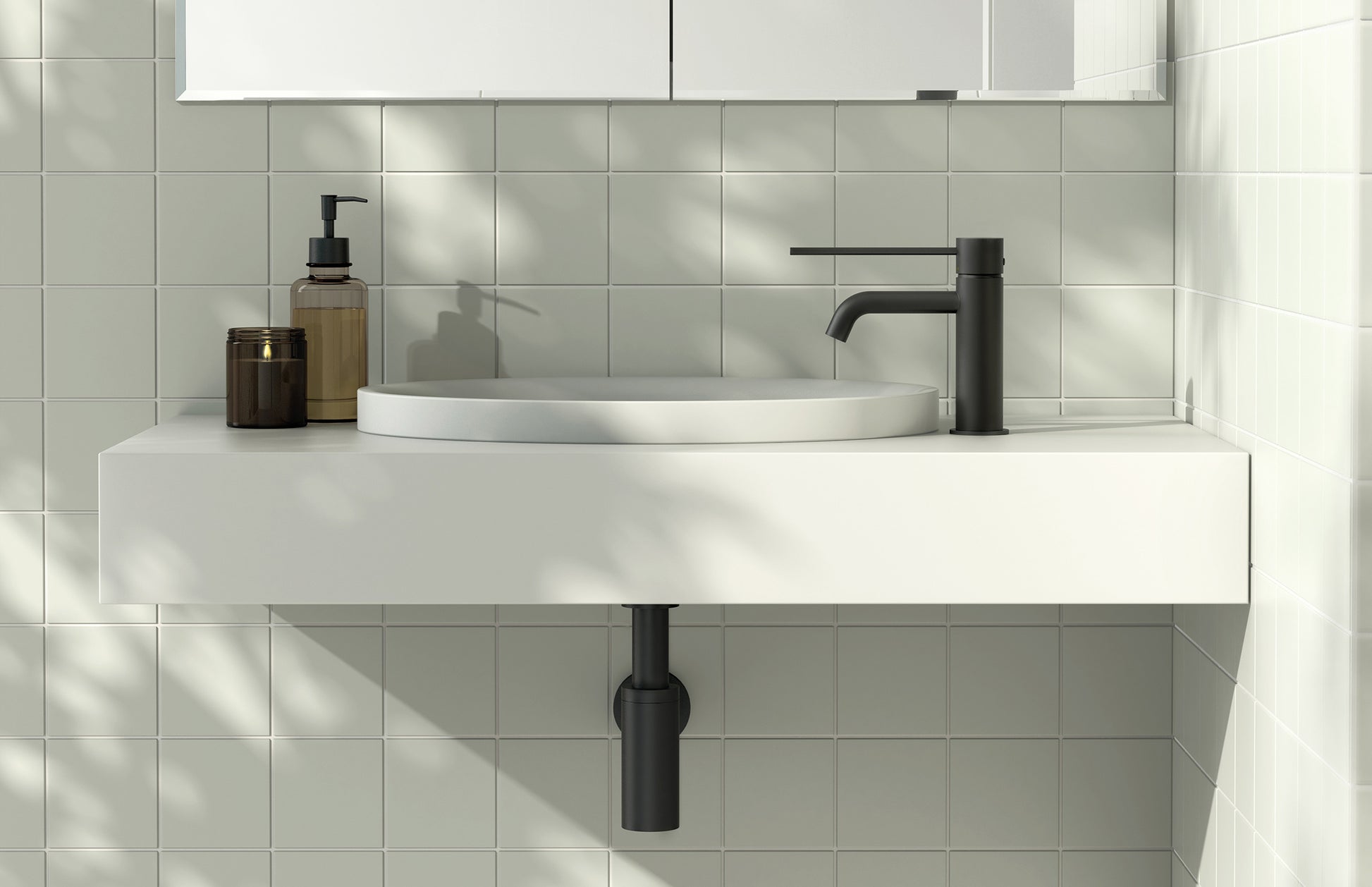 Vivid Slimline Basin Mixer Curved Outlet with Extended Lever