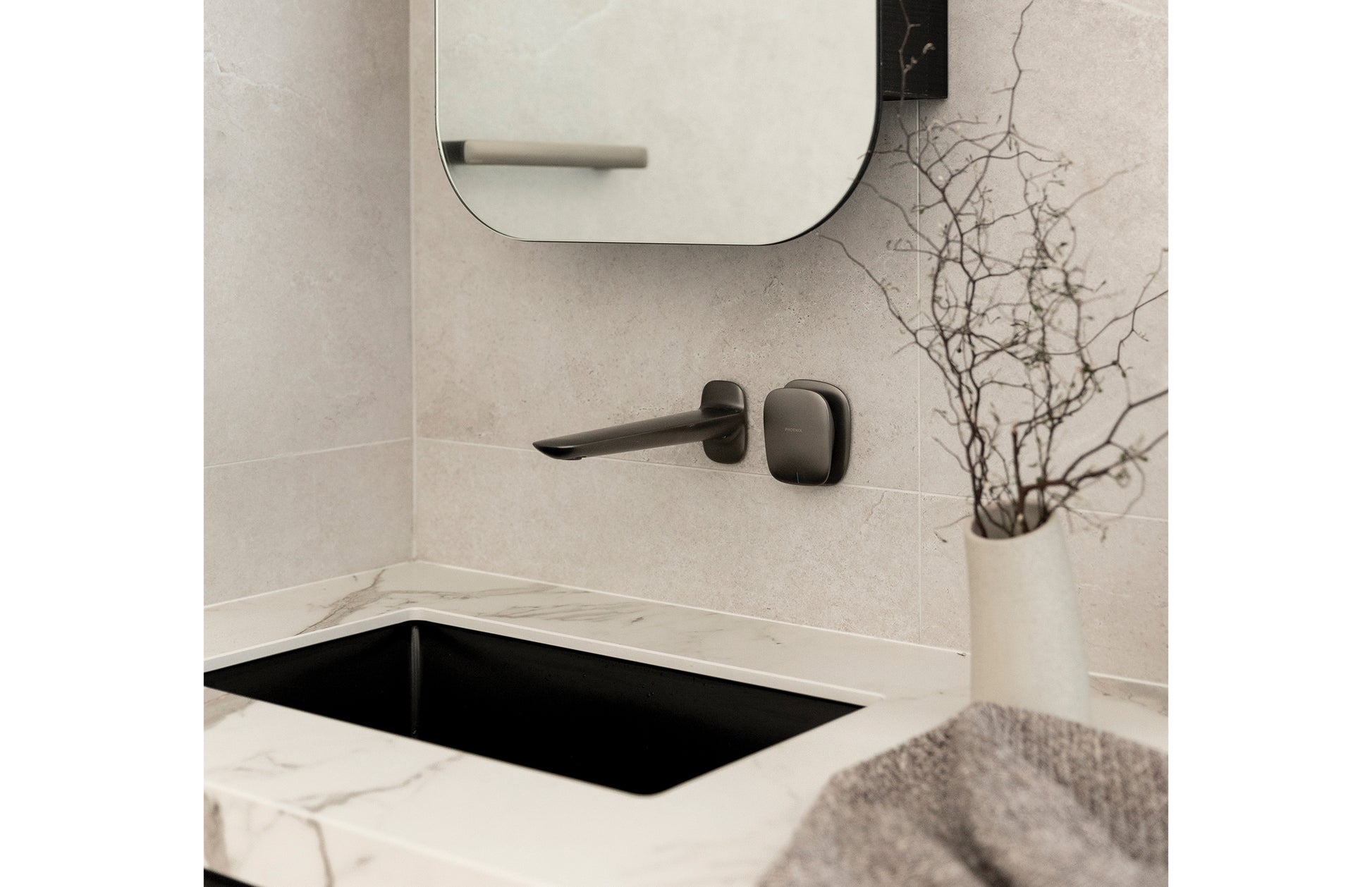 Nuage Wall Basin / Bath Mixer Set 200mm Brushed Carbon