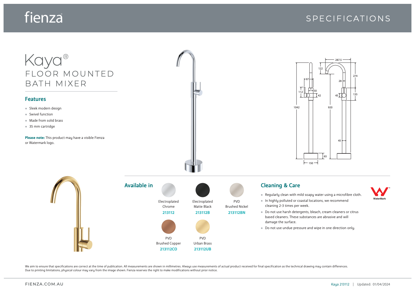 Please note: These products may have a visible Fienza or Watermark logo.