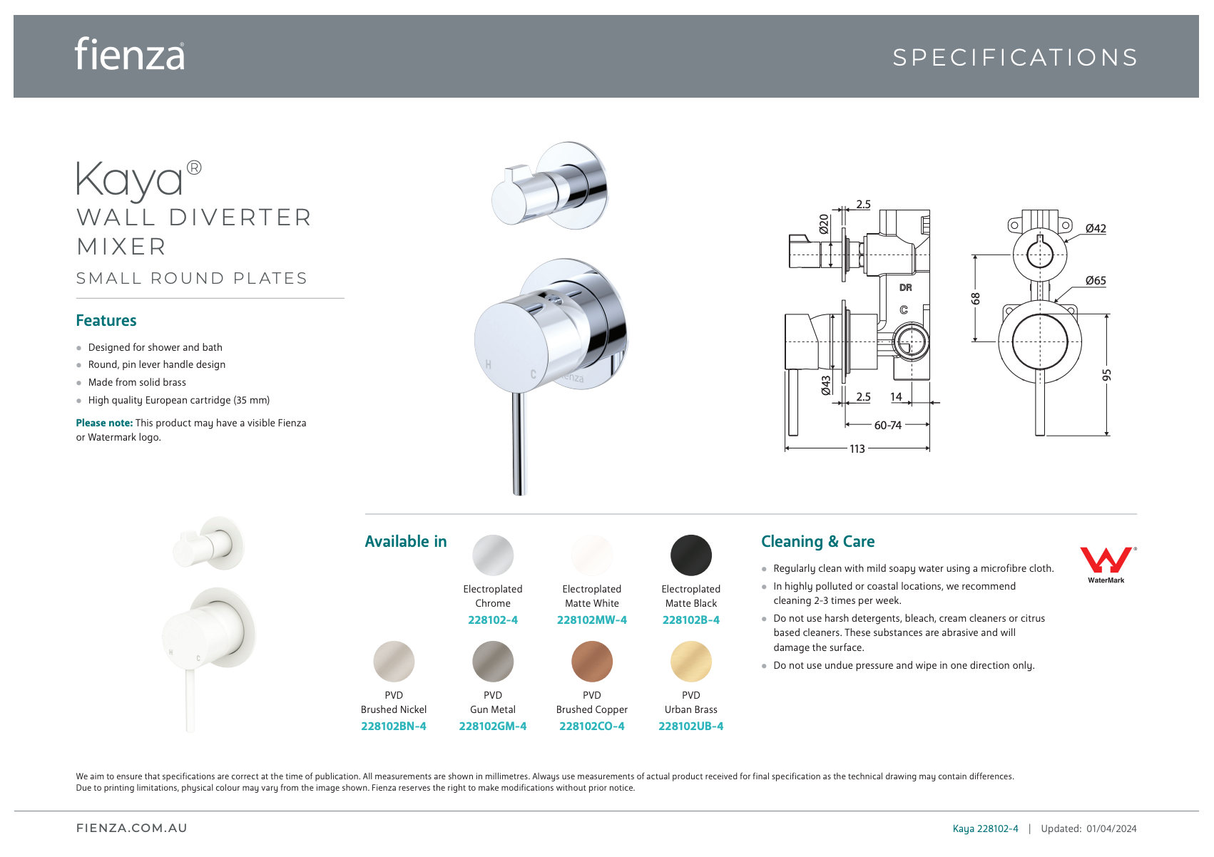 Fienza Kaya Wall Diverter Mixer Small Round Plate Brushed Nickel