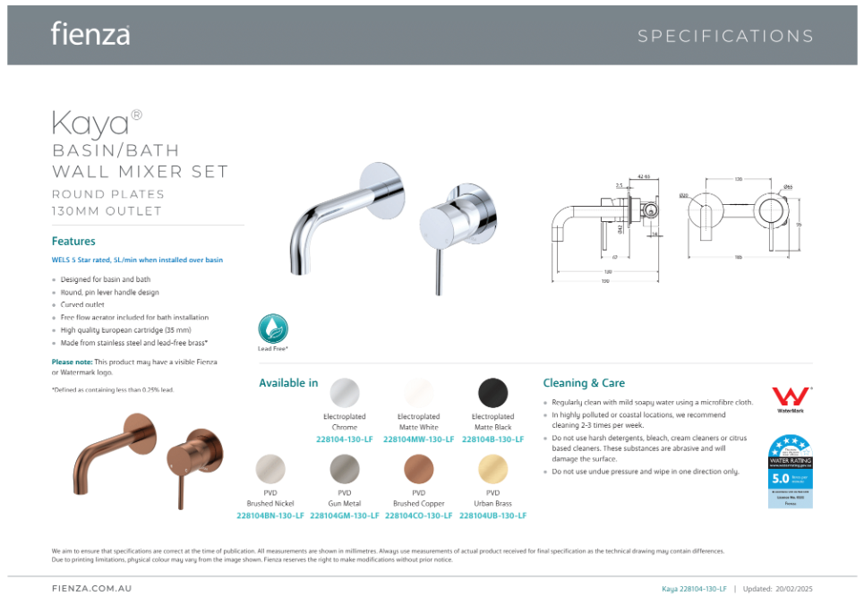Add a touch of modern elegance to your bathroom with the Fienza Wall Basin/Bath Mixer Set in Matte White. Its clean, minimalist design and fresh matte white finish create a sleek statement that blends seamlessly into contemporary interiors. Designed for both basins and baths, this set combines everyday practicality with timeless style.