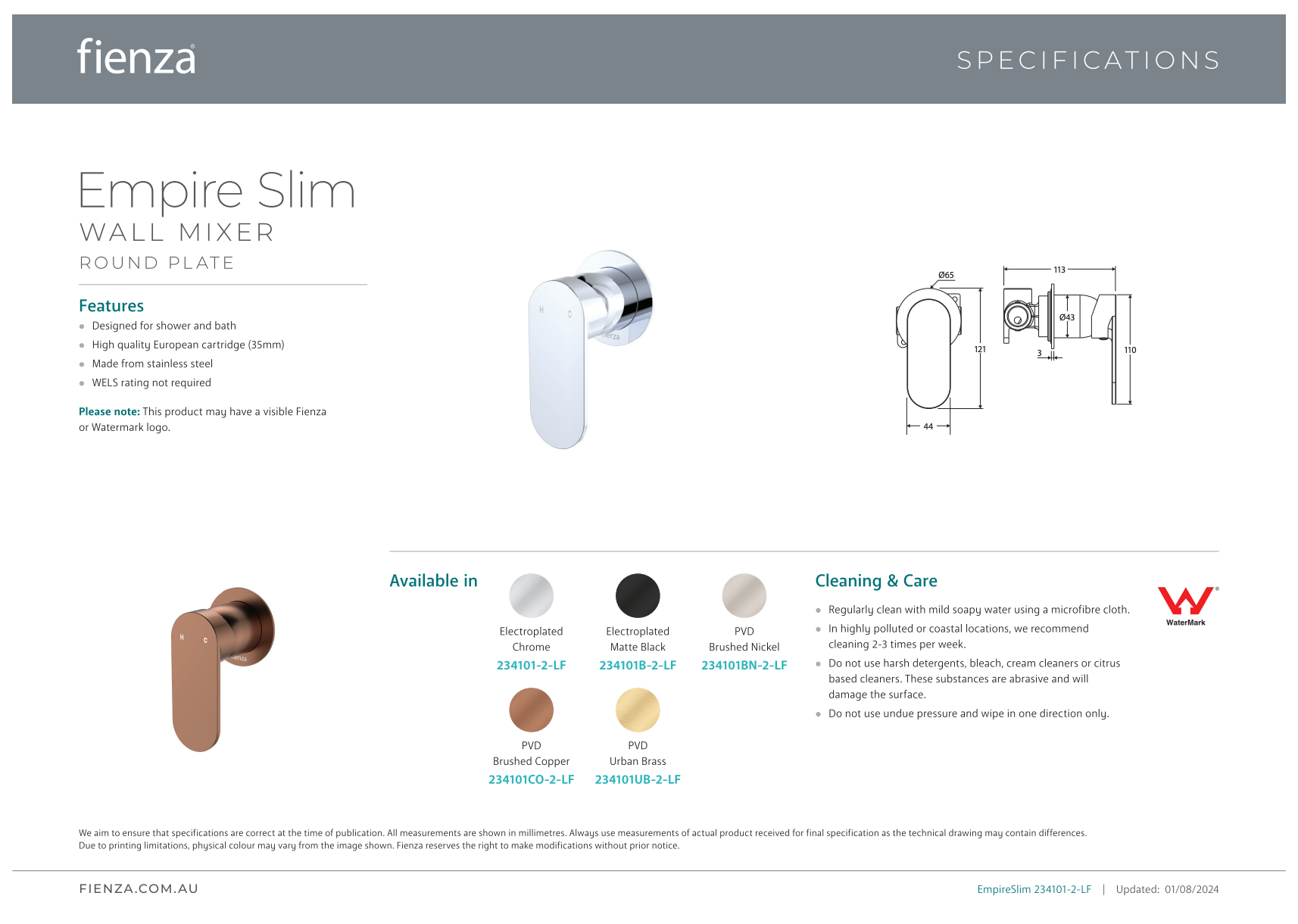 Crafted from premium materials and backed by Fienza’s lifetime warranty, the Empire Slim range combines long-lasting durability with everyday convenience.