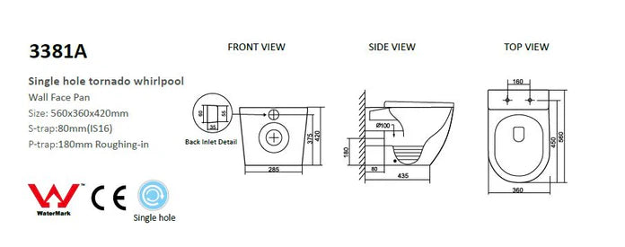 T4 Rimless Wall Faced Tornado Flush Pan Only