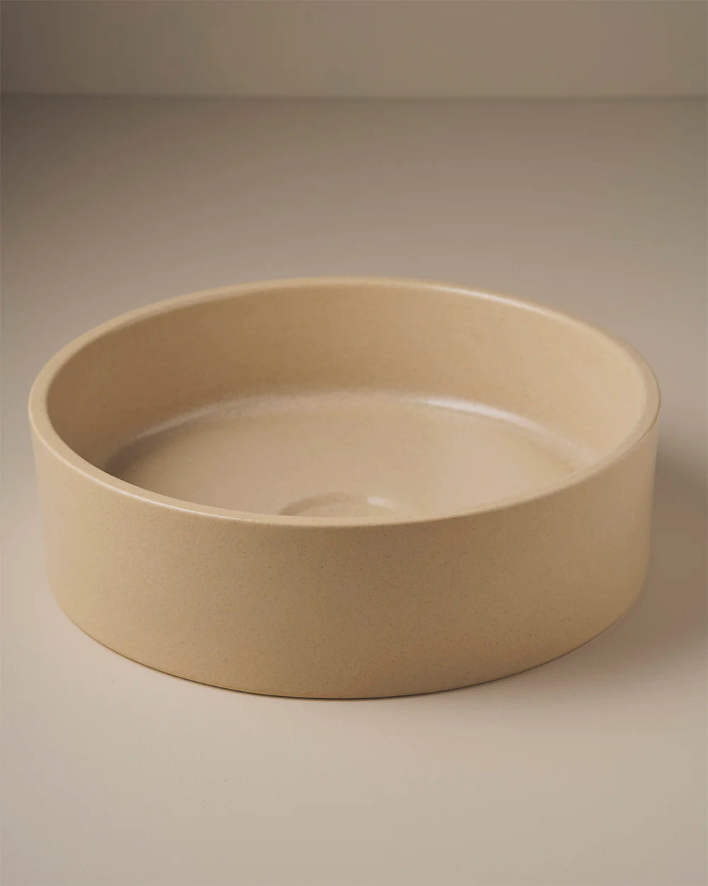 Straight sided walls with simple, contemporary profile. Clay 400 is a classic show-stopping piece, perfect for a modern vanity. Available in 6 unique finishes developed in-house by Robert Gordon