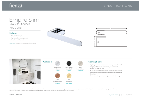 Fienza Empire Slim Hand Towel Holder Brushed Nickel
