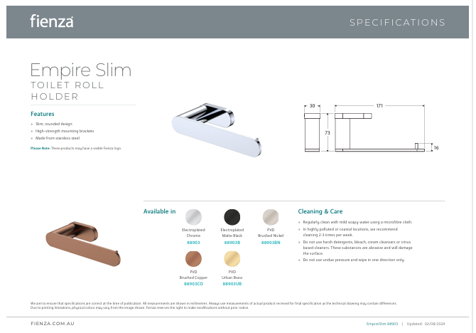 Fienza Empire Slim Toilet Roll Holder Chrome
