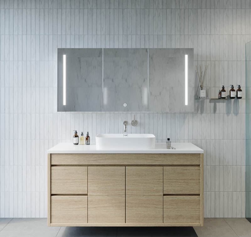 This lighted bathroom mirror cabinet is made for convenience, designed to create a bold statement. The Amber collection sleek design creates an illusion of space with additional storage. Designed with dimly lit bathrooms in mind, the LED mirror cabinet lights up your face, making makeup and manscaping applications effortless. With an in-built demister that defogs the cabinet after a hot shower, always see your perfect reflection.
