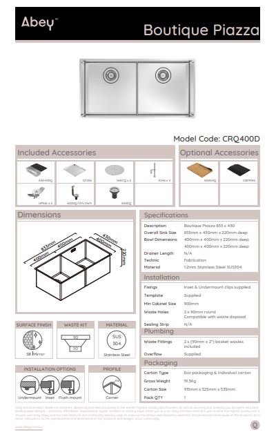 2 x 400mm x 400mm x 220mm - Bowl Size