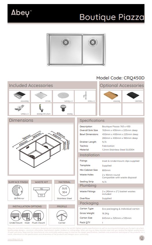 Abey Boutique Piazza Double Bowl Sink 60/40