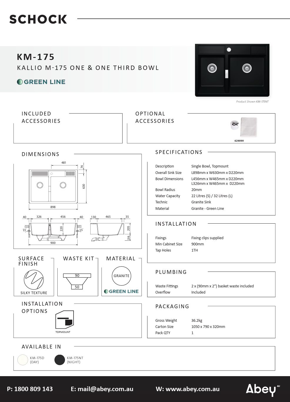 Abey Schock Kalio One & 1/3 Bowl Day Sink