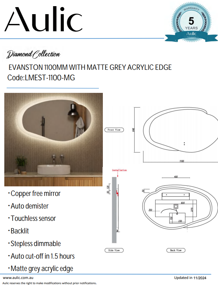 Aulic Evanston Asymetrical 1100 LED Mirror