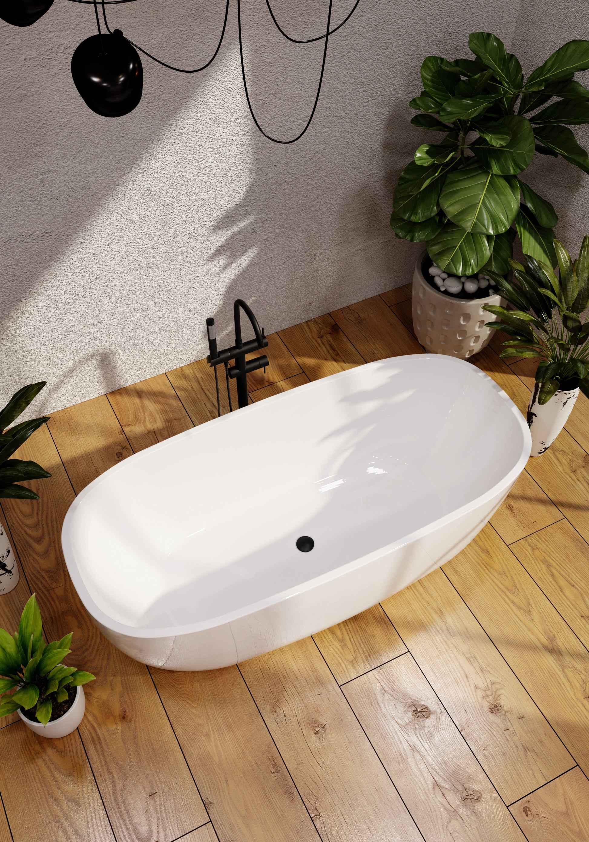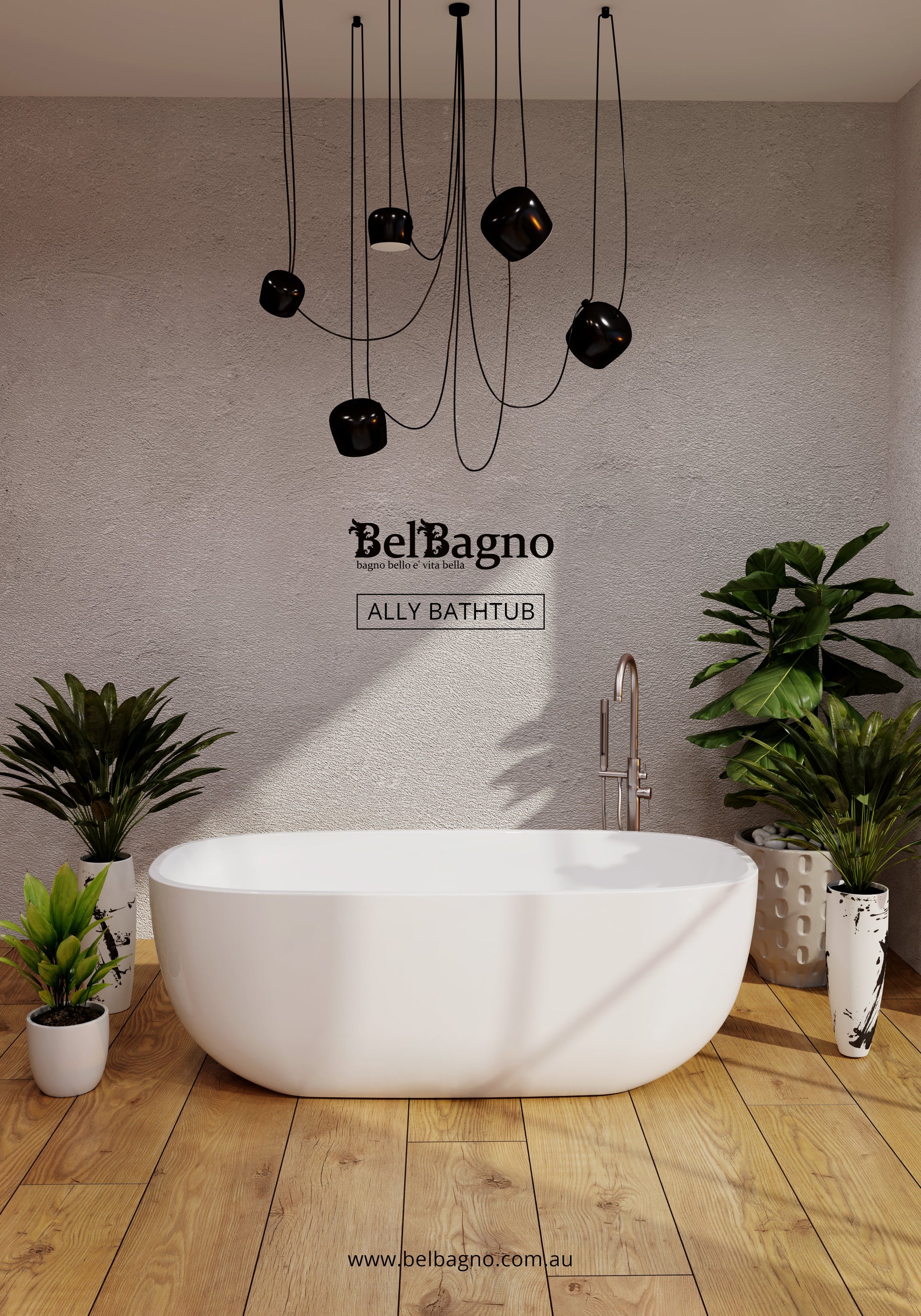 Aveo Bathtub is 100% high gloss pure acrylic. Upmarket and contemporary designer style, unique shape. BelBagno acrylic baths have excellent thermal properties, they retain heat and are warm to the touch. All our acrylic baths are fibreglass reinforced in 5 layers for rigidity and quality. Tap holes can be drilled on site. Lightweight, yet rigid due to baseboard and fibreglass backing. Chips or scratches can be filled and repaired.