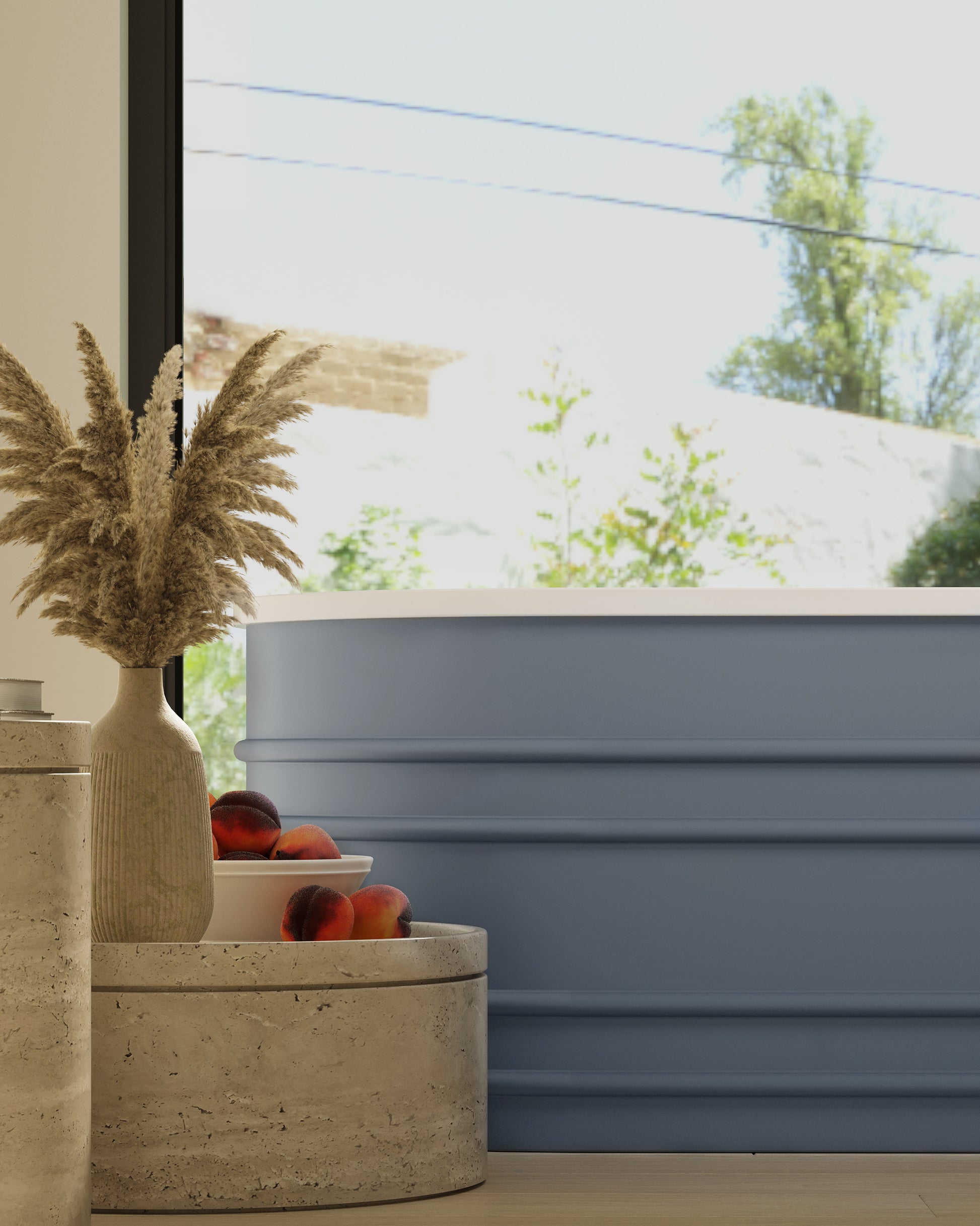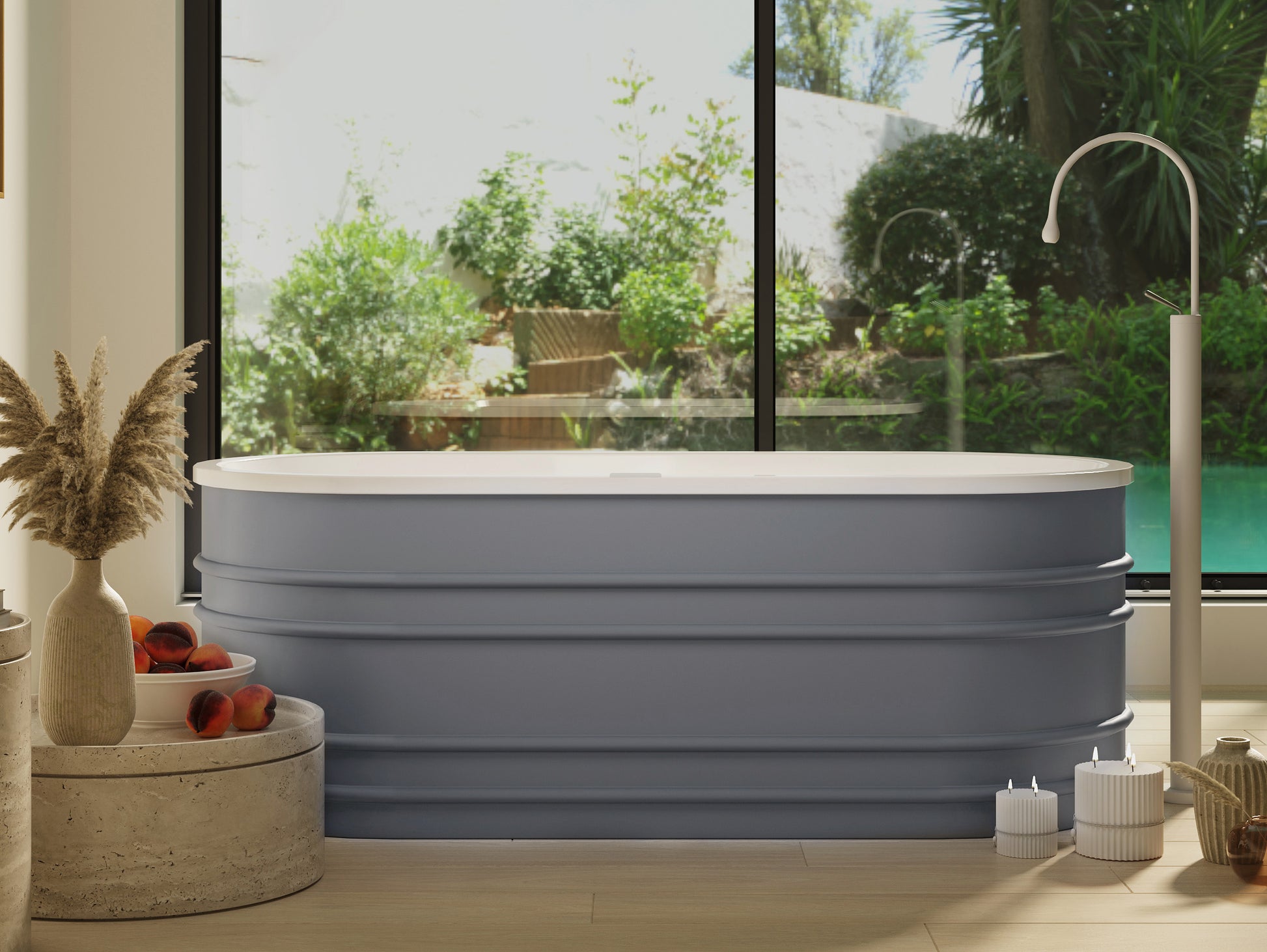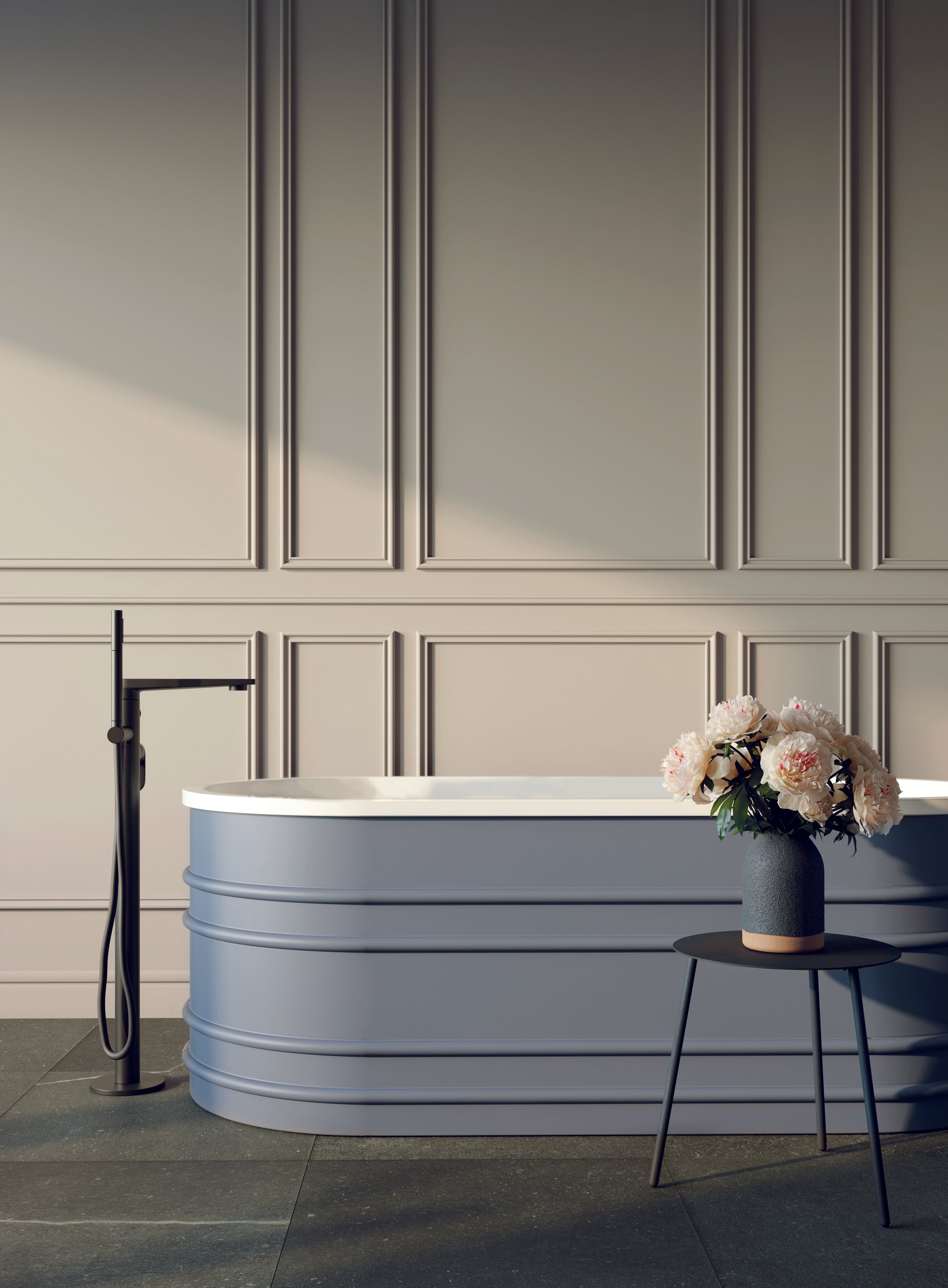 - Freestanding bath made from high-quality marble and acrylic composite material and reinforced by fiberglass.