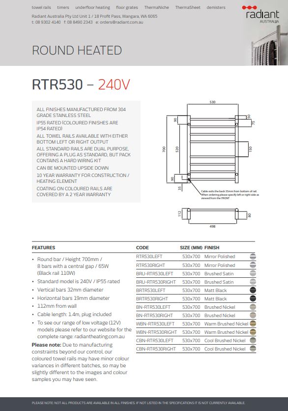 Radiant 240V Heated Round Ladder 430 x 700 Matte Black