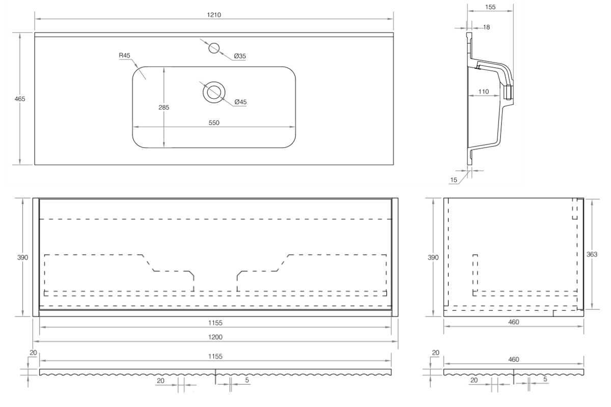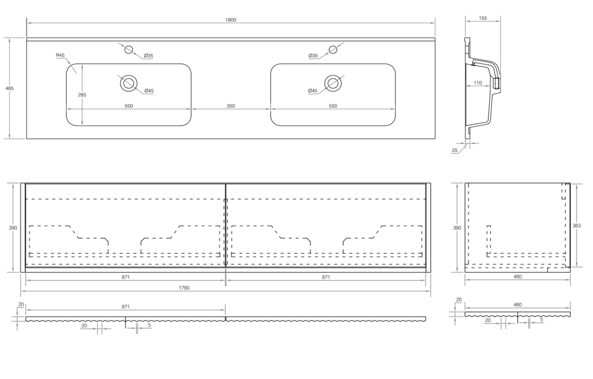 - 600, 750, 900, 1200, 1500, 1800mm