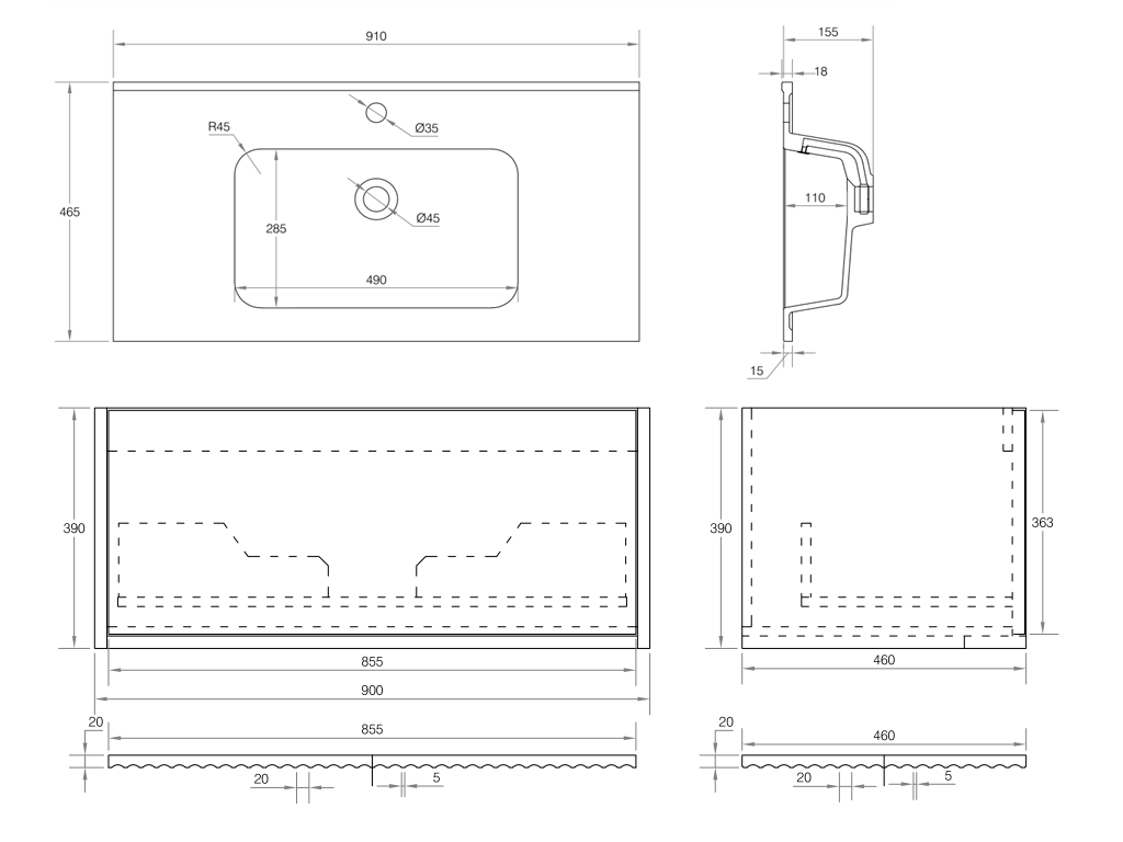 - Basins are sold separately.