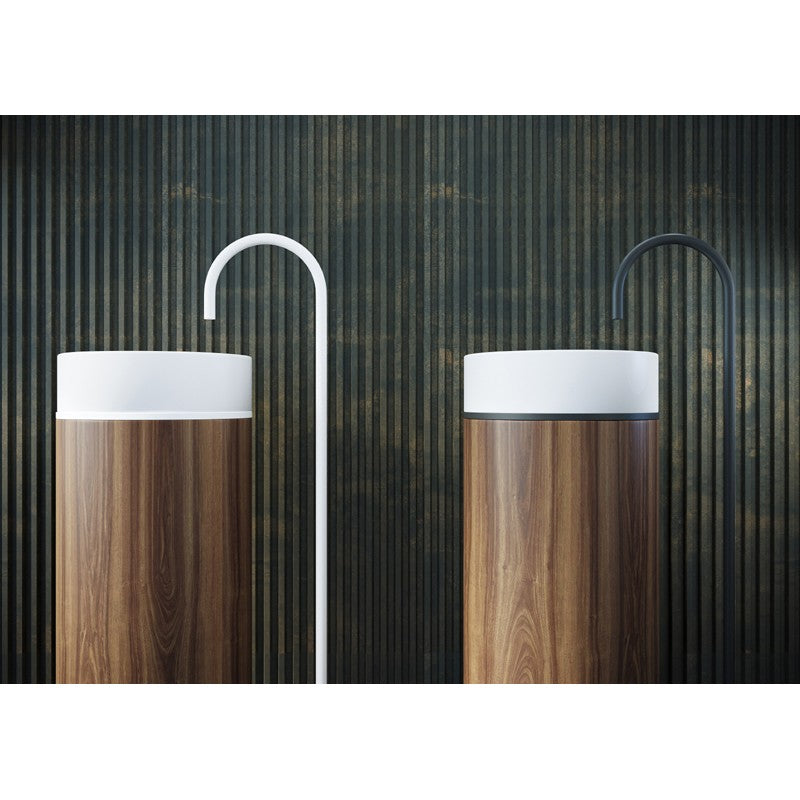 Combining the coolness of solid surface and the warmth of wood finish, Tesoro creates a sensation of comfort in the bathroom.