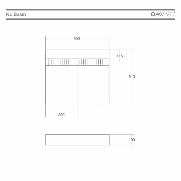 The KL can be wall mounted or installed on a bench top with the option of mounted tapware or with 1 tap hole. A 250mm wall outlet is recommended, with the water falling at a 90 degree angle directly down onto the vessel. KL is supplied with a waste and unique stainless steel grate.