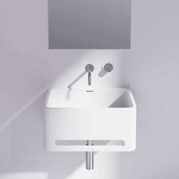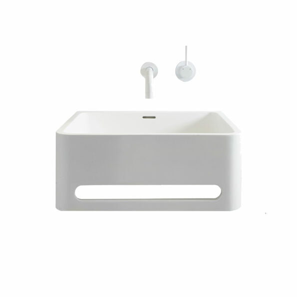Manufactured in solid surface it has a smooth matt finish that is durable and easy to maintain, ideal for residential and commercial applications.