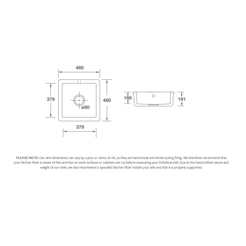 All dimensions are in mm. Dimensions may vary by up to plus or minus 2%; we recommend that customers do not cut out work surfaces or units until they have taken delivery of their sink. Because all our fireclay sinks are handmade using traditional methods, they are 100% unique. Slight variations in the finish from one sink to the next add character and are in keeping with the way these sinks have been made for the past 100 years.