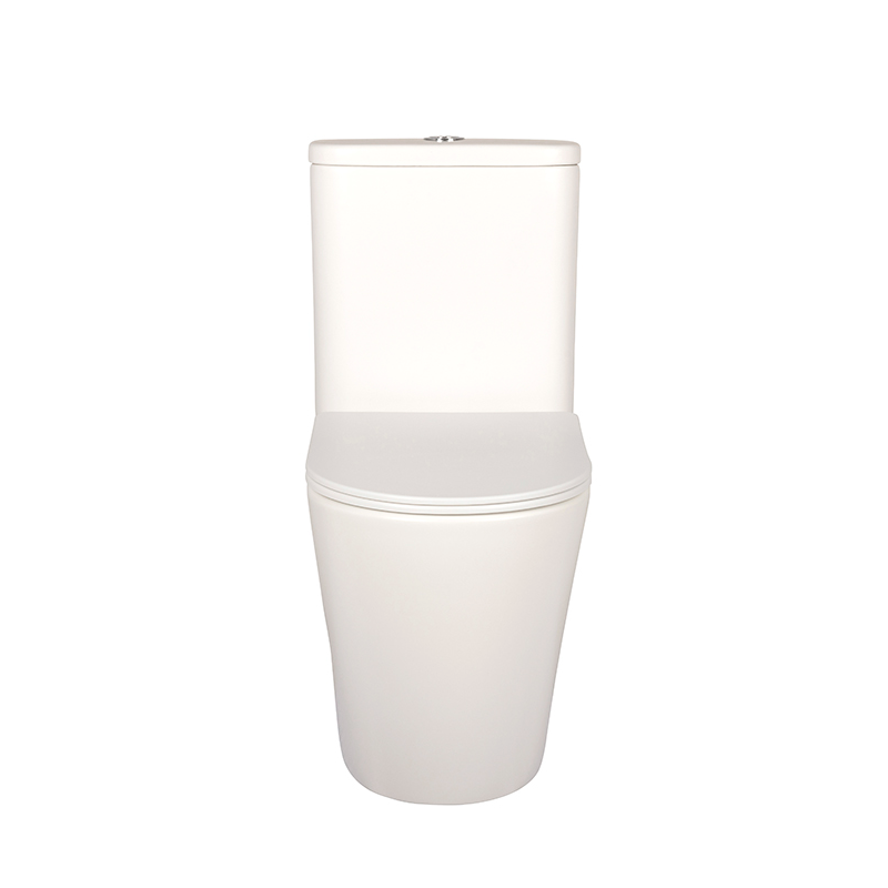 The matte white finish of the soft-close seat of these rimless toilet suites looks great with any type of bathroom decor.