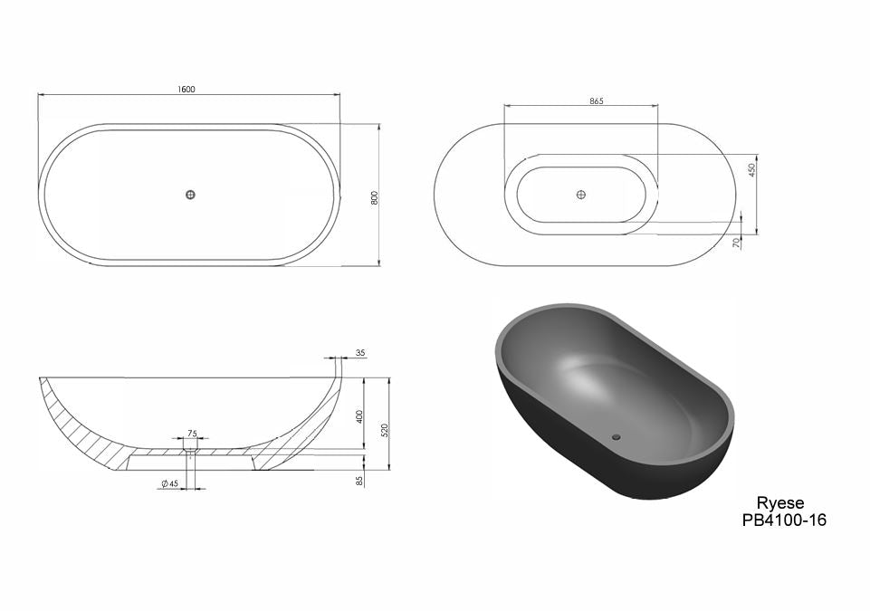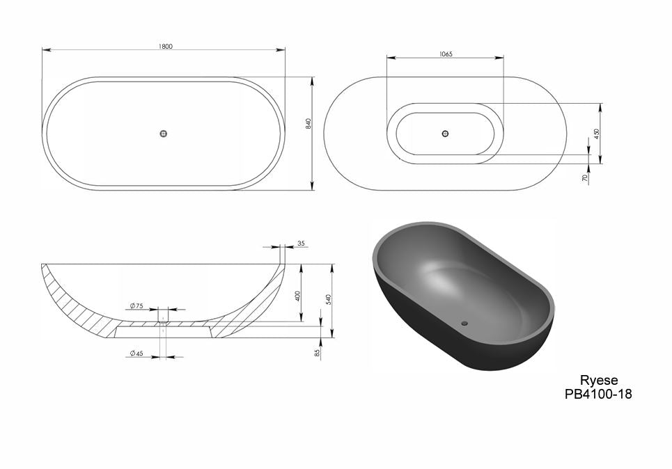 The Ryese freestanding bathtub will give your bathroom the luxury and high end look it deserves. With its traditional shape and clean flowing lines, it is exceptionally versatile and practical. The Ryese stone bath has been elegantly hand crafted to become the centrepiece of your bathroom.