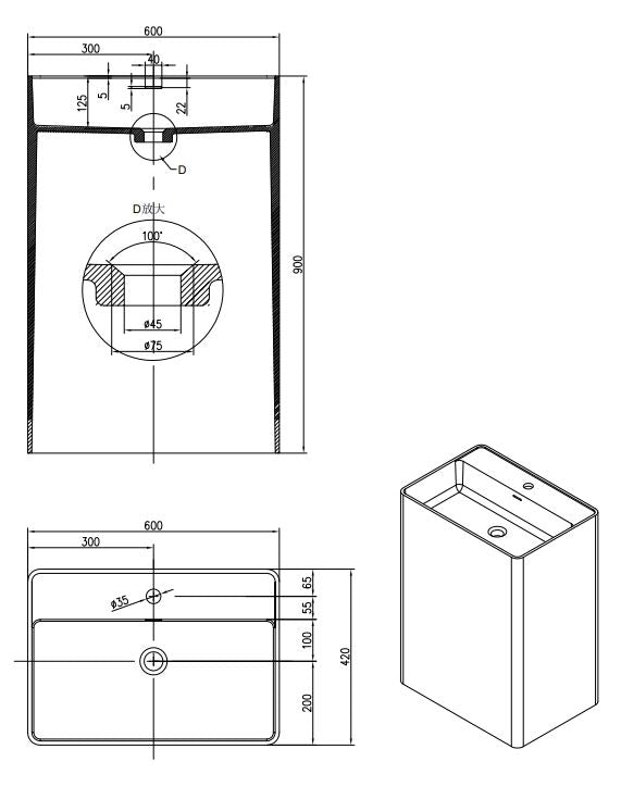 Pietra Bianca Cube Freestanding Pedestal Basins