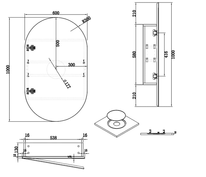 Cassa Designs Elli Pill 600mm Shaving Cabinet