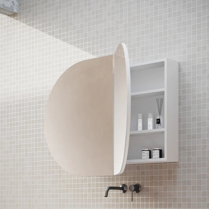 - This Cassa minimalist mirror cabinet curves a pill for a modern silhouette.