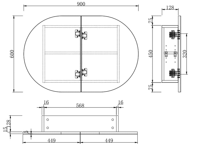 Cassa Designs Elli Pill 900mm Shaving Cabinet