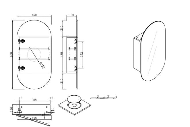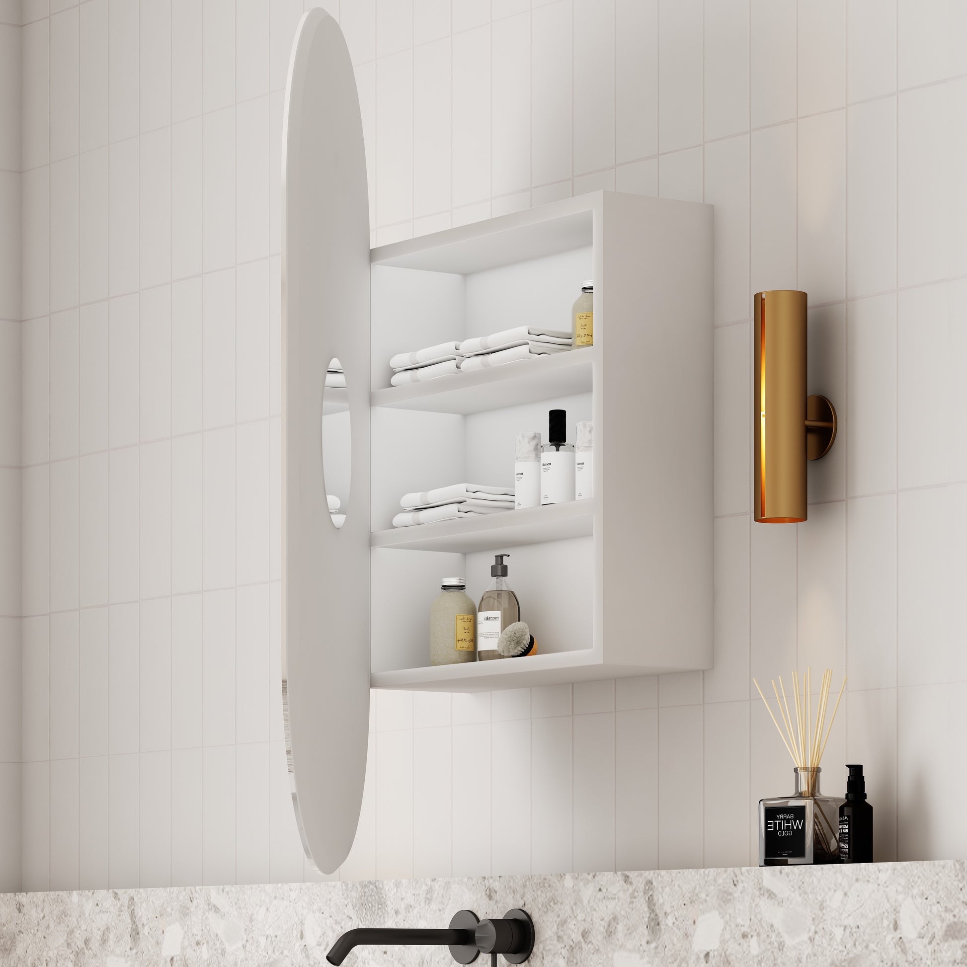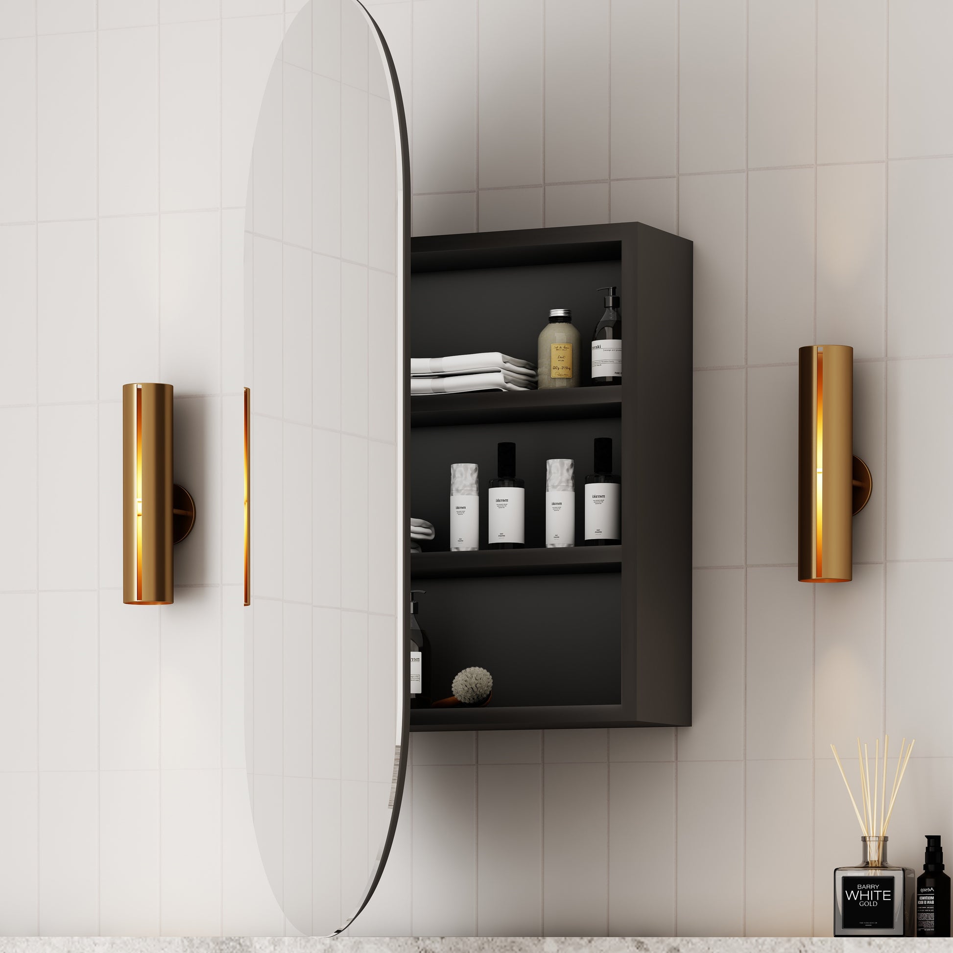 - This Cassa minimalist mirror cabinet curves an elongated oval for a modern silhouette.