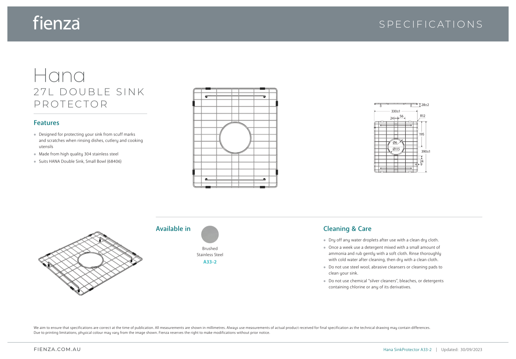 Fienza Hana 27L Double Sink Protector Stainless Steel