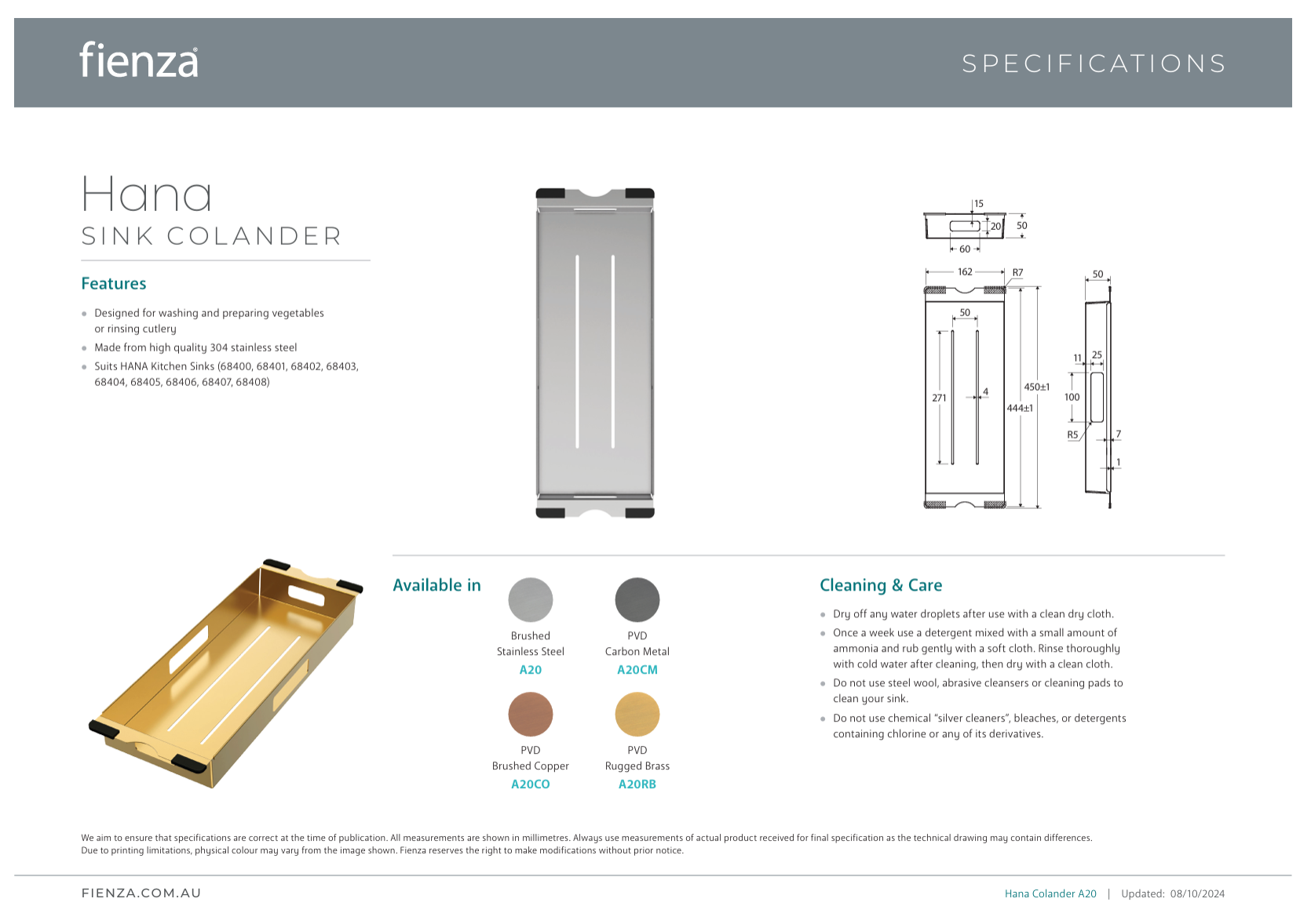 - Suits HANA Kitchen Sinks (68400, 68401, 68402, 68403, 68404, 68405, 68406, 68407, 68408)