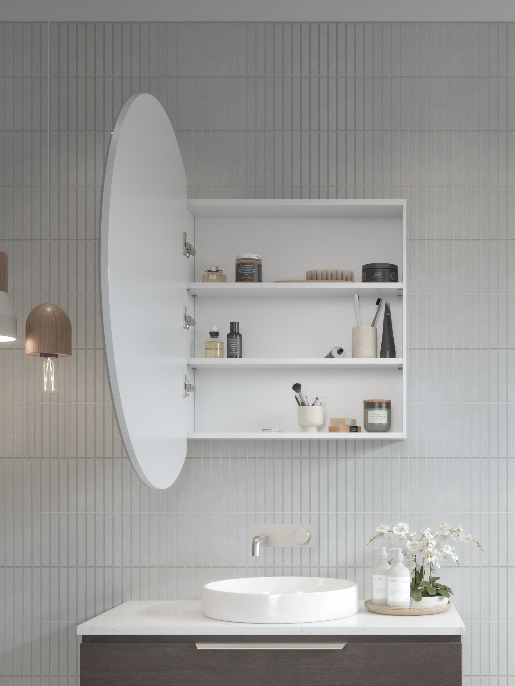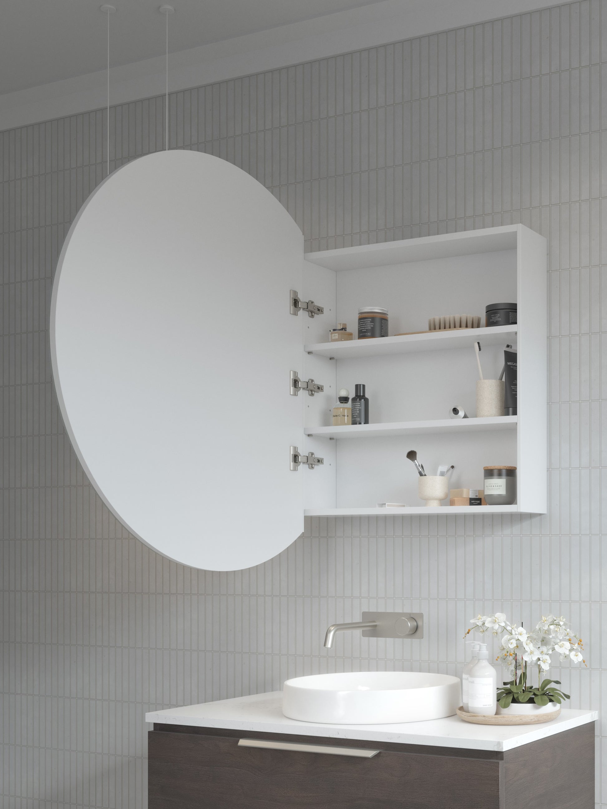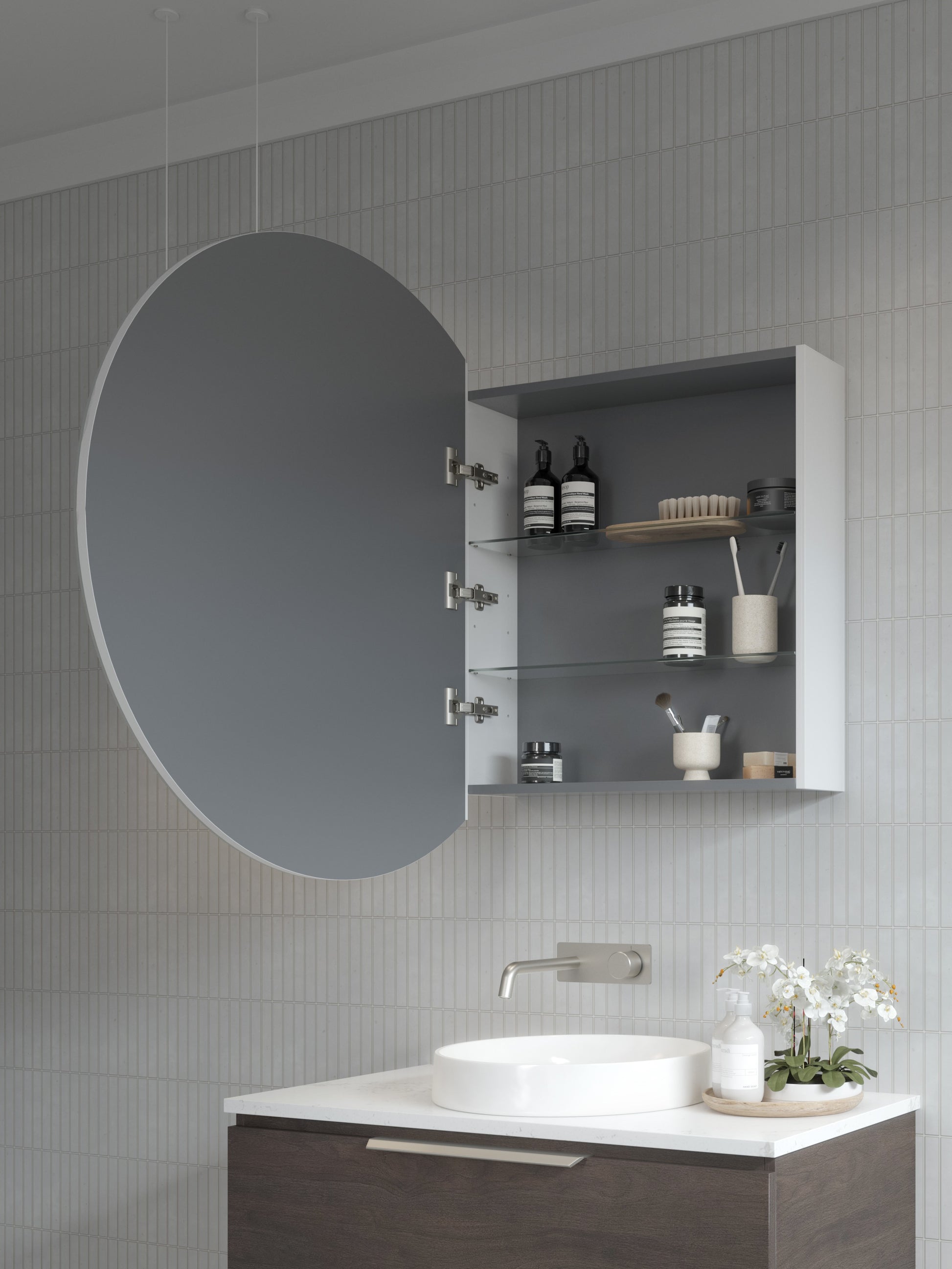 Bring a touch of sophistication to your modern bathroom with the Havana shaver! Its stunning round design not only adds a stylish touch but also offers practical storage solutions for your bathroom essentials. Maximise your space with the option of a fully reversible hinge side (unless ordered with lighting or powerpoint), ensuring the perfect fit in any bathroom layout.