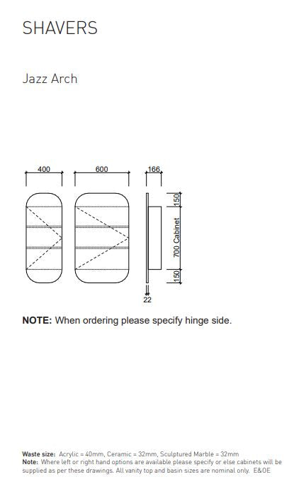 Transform your bathroom into a luxurious oasis with the Jazz Arch shaver! To add a touch of sophistication, upgrade your shaver with optional under cabinet lighting. The soft, warm glow of the lighting will enhance the overall ambiance of your bathroom and make it a truly enjoyable haven.