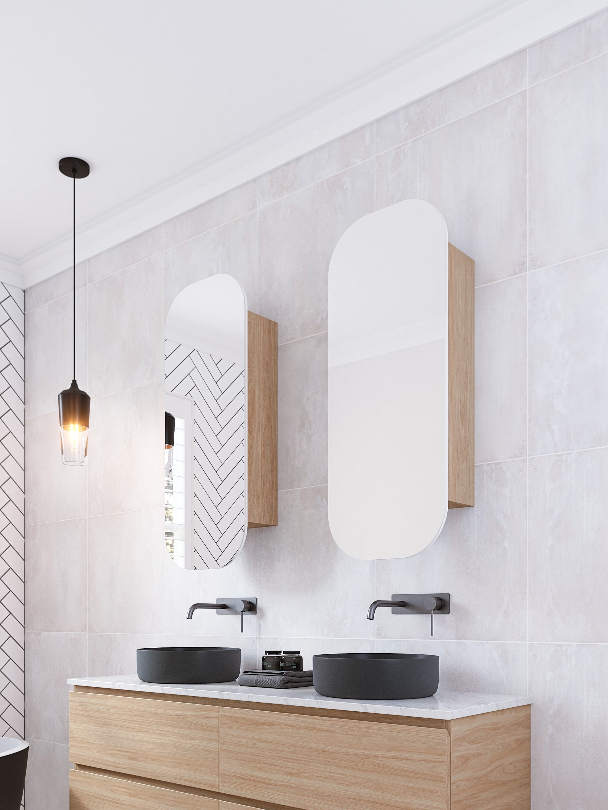 - Upgrade to Platinum option with Luxe Graphite interior and glass internal shelves to match Platinum vanities