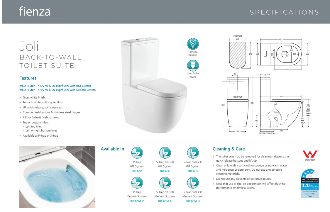 Joli Tornado Flush Back-to-Wall Toilet Suite