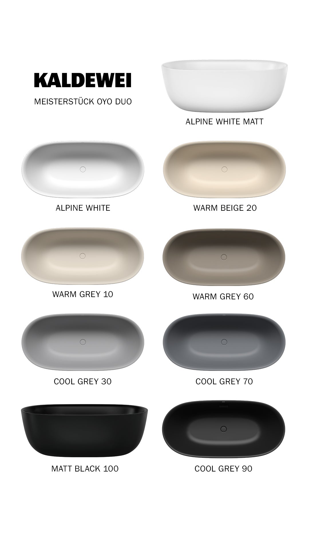 The KALDEWEI MEISTERSTÜCK OYO DUO is a masterpiece of German engineering, in an unprecedented egg shape made of steel enamel. With this free-standing bathtub, Stefan Diez has created a graceful design sculpture that integrates harmoniously into the bathroom space, flowing and almost floating. Inspired by Japanese porcelain design, the double-walled product impresses with its minimal organic lines and elegant functionality. Thanks to KALDEWEI’s many years of experience, the interior shape of the OYO DUO offers maximum lying comfort and at the same time the possibility of using water as a resource in an environmentally friendly way. Its exterior shape follows the idea of elegance, lightness and naturalness.