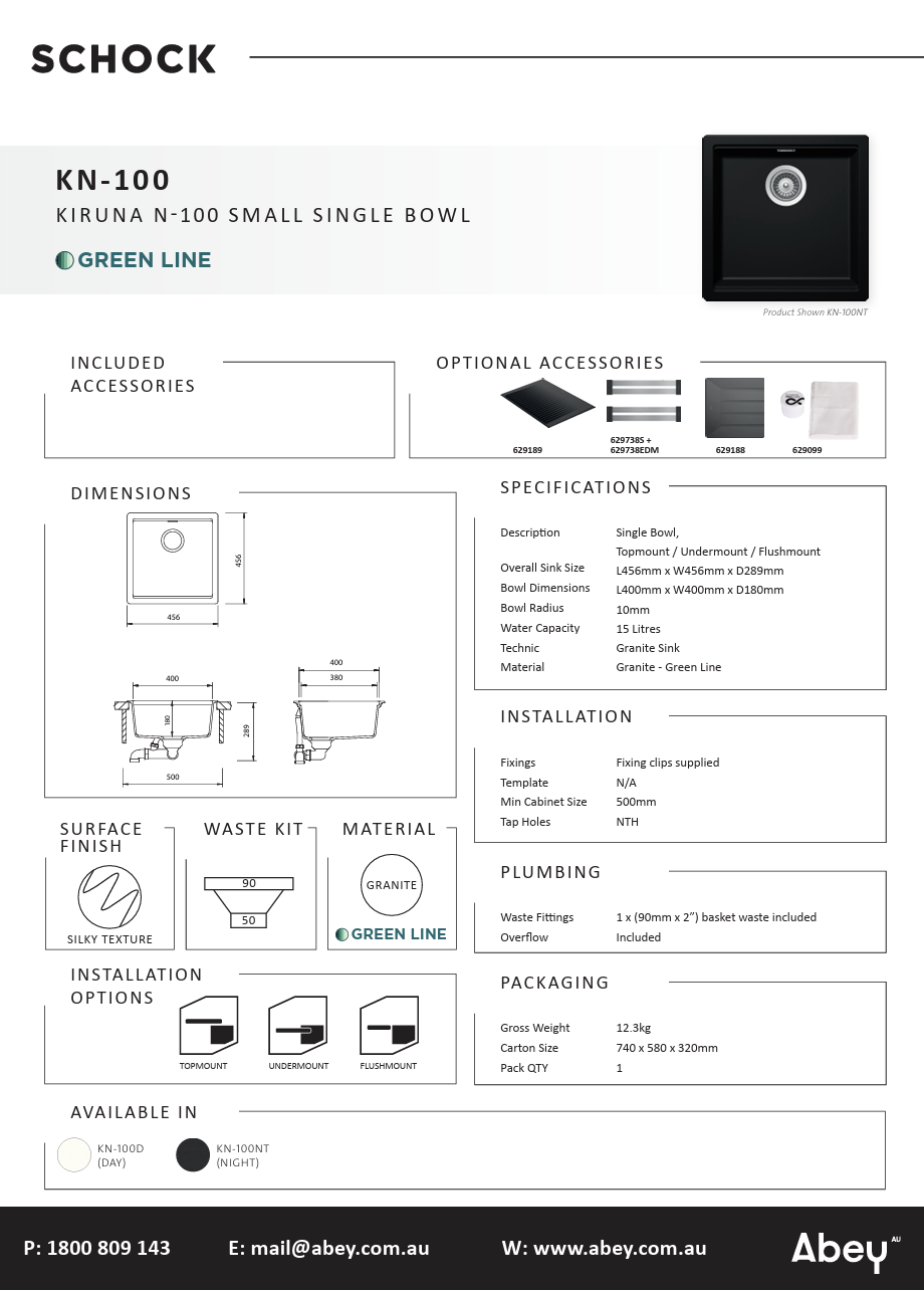 Abey Kiruna Single Bowl Granite Sink Day