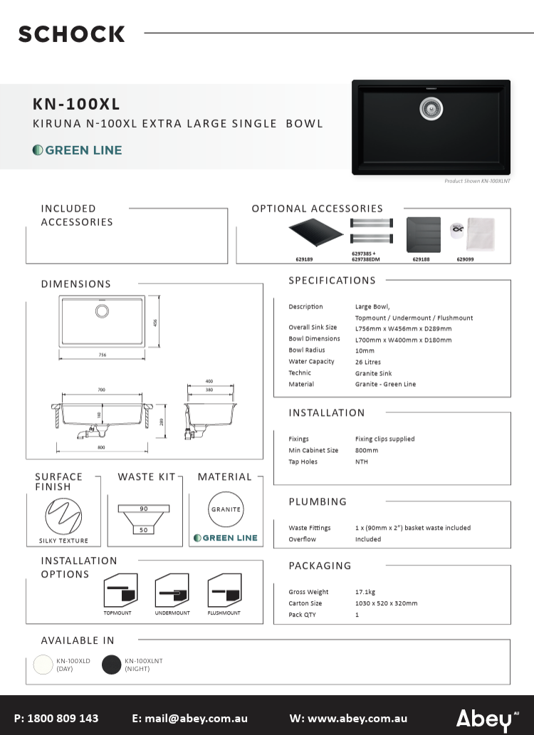 Abey Schock Kiruna Extra Large Single Bowl Day Sink