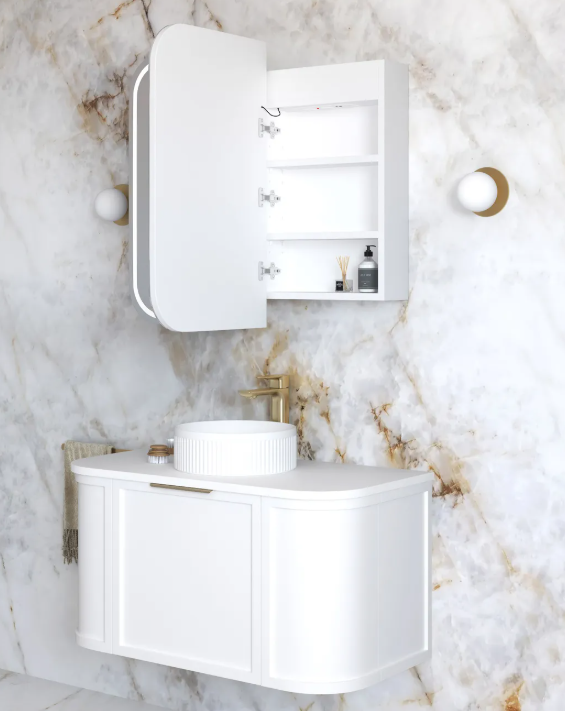 NEWPORT 900mm LED SHAVING CABINET MATTE WHITE