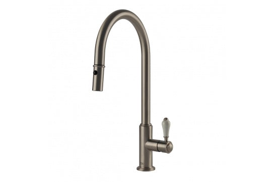 The Ludlow pull out mixer tap has been designed in England, and expertly crafted in Italy. This traditional-style tap draws inspiration from the Victorian era, offering a timeless aesthetic for your kitchen. Made from lead-free brass, our tap guarantees durability and safety, while its white lever handle design adds a touch of elegance. The pull-out spray mixer provides added functionality and flexibility allowing you to reach into the corners of even the largest of sinks.