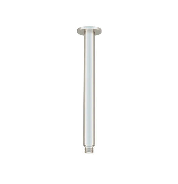 The Round Brushed Nickel Ceiling Arm is made from solid brass and drops 300mm, connecting to a beautiful round rainfall shower head finished in a PVD coating.