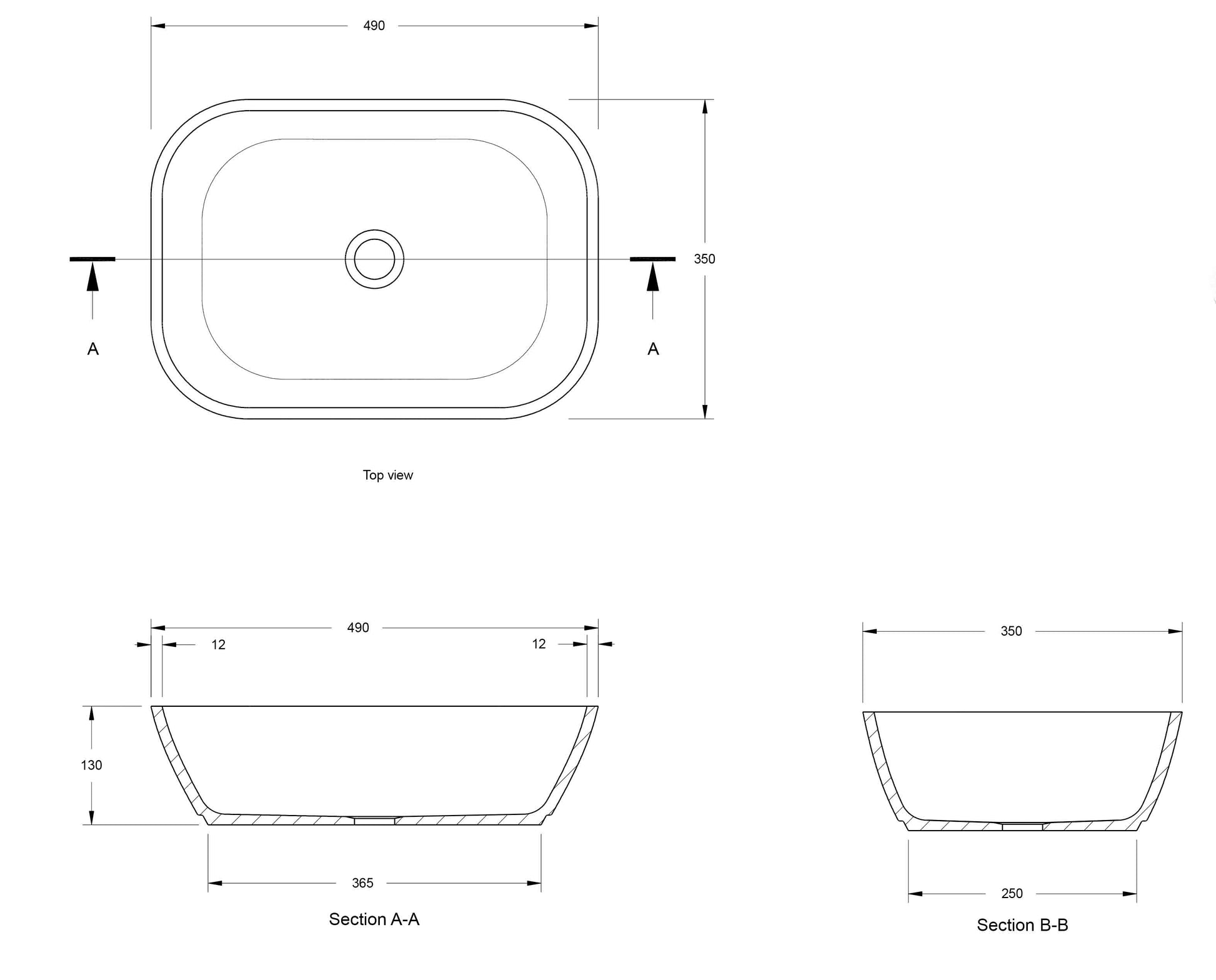 Maldon 49 x 35 TitanCast Solid Surface Above Counter Basin - Gloss White