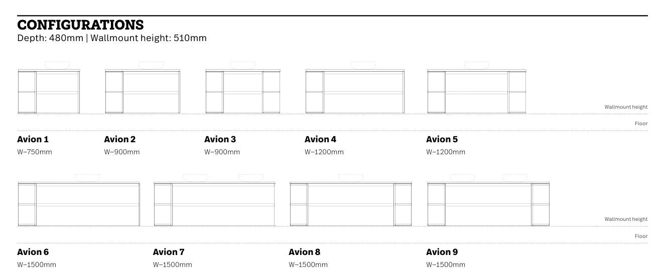 - Avion 1, 2, 4, 6 and 7 shelf ends available on left OR right