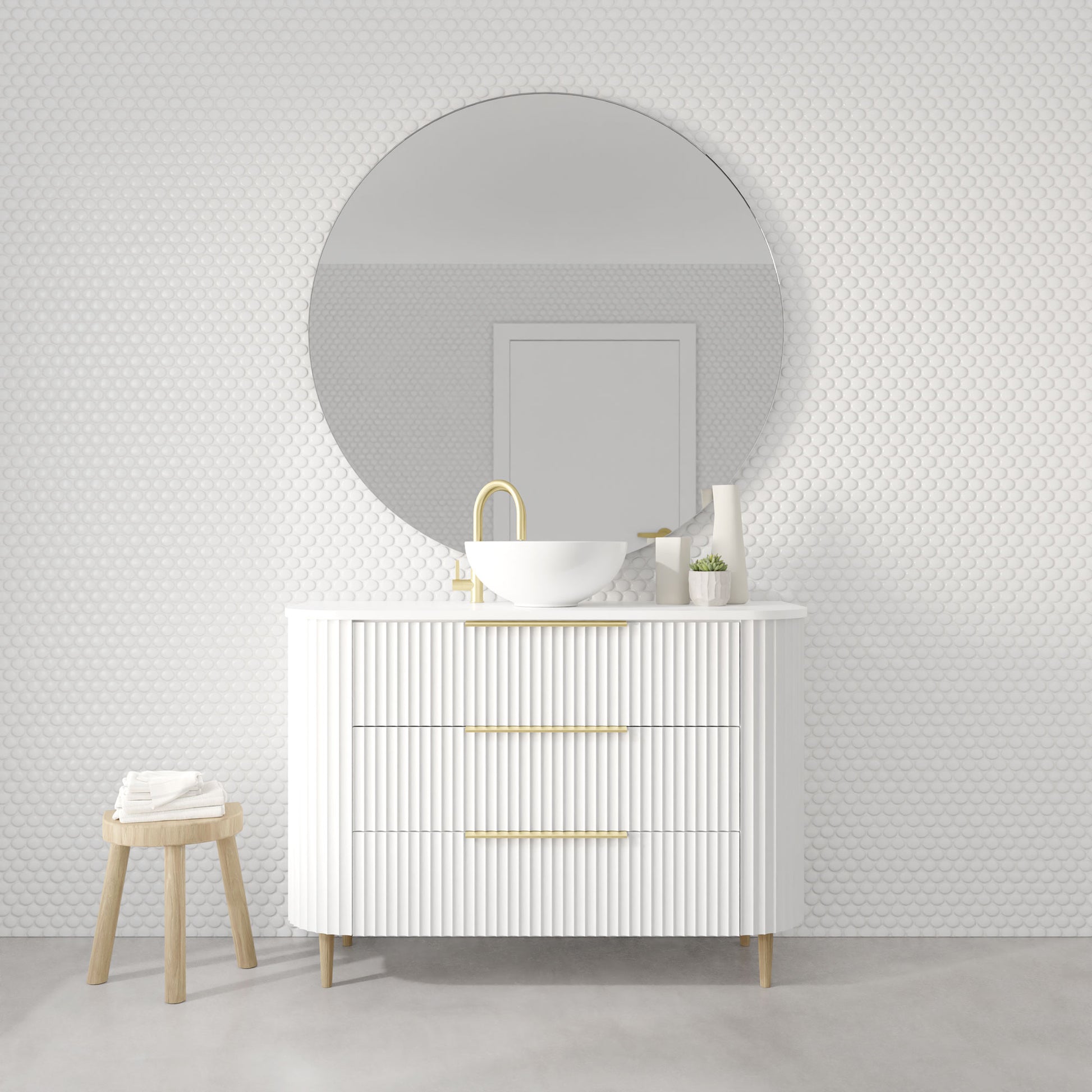 Transform your bathroom into a sanctuary of luxury with the Shore. This gracefully curved cabinet offers both style and practicality, providing ample storage space. Choose from a variety of fluted designs, sizes, and 12 elegant finishes to seamlessly integrate with your decor.