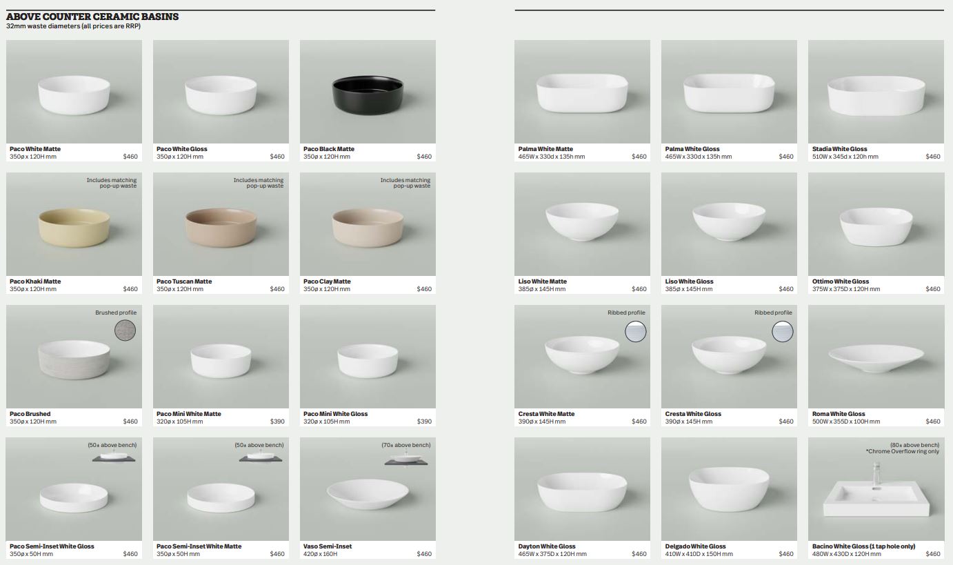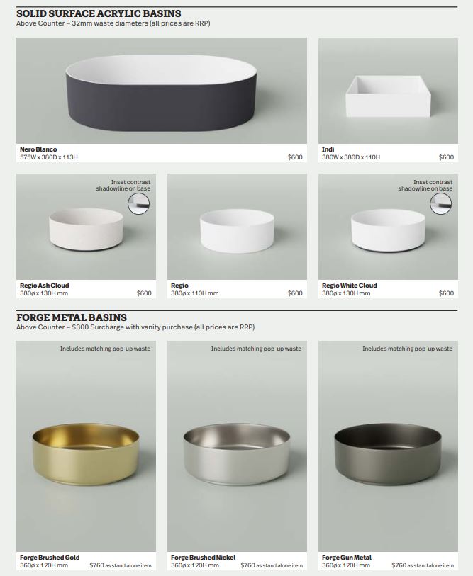 Benchtop Options: 20mm Symphony / 20mm Stone Ambassador, 20mm Caesarstone, 12mm Dekon, 12mm Vasari