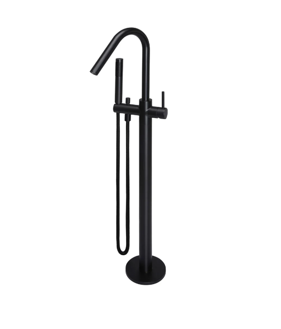 Round Freestanding Bath Spout and Hand Shower - Matte Black