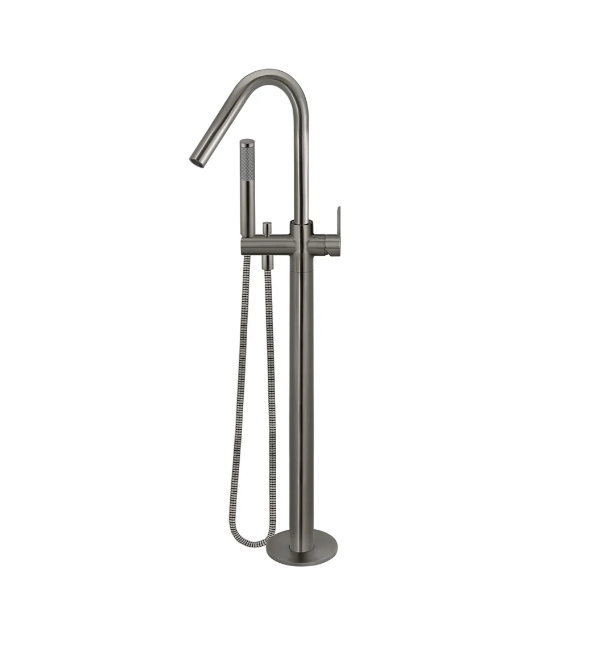 Meir Round Paddle Freestanding Bath Spout and Hand Shower Gunmetal