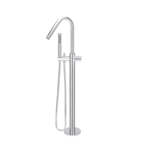 Meir Round Pinless Freestanding Bath Spout And Hand Shower Chrome